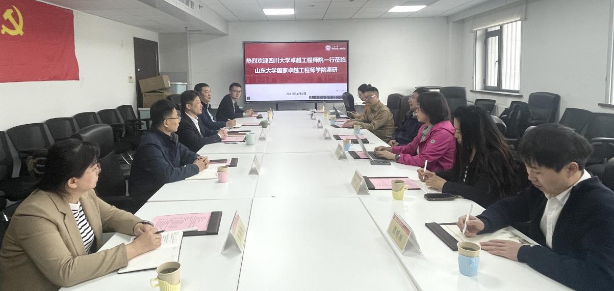 4月8日,我校英国威廉希尔公司一行7人赴山东大学国家英国威廉希尔公司开展调研交流。山东大学研究生院常务副院长、研工部部长、国家英国威廉希尔公司执行院长韩勃,研究生院专业学位教育办公室(在职教育中心)主任、国家英国威廉希尔公司副院长郑彬,国家英国威廉希尔公司副院长张存生等参加了调研会议。